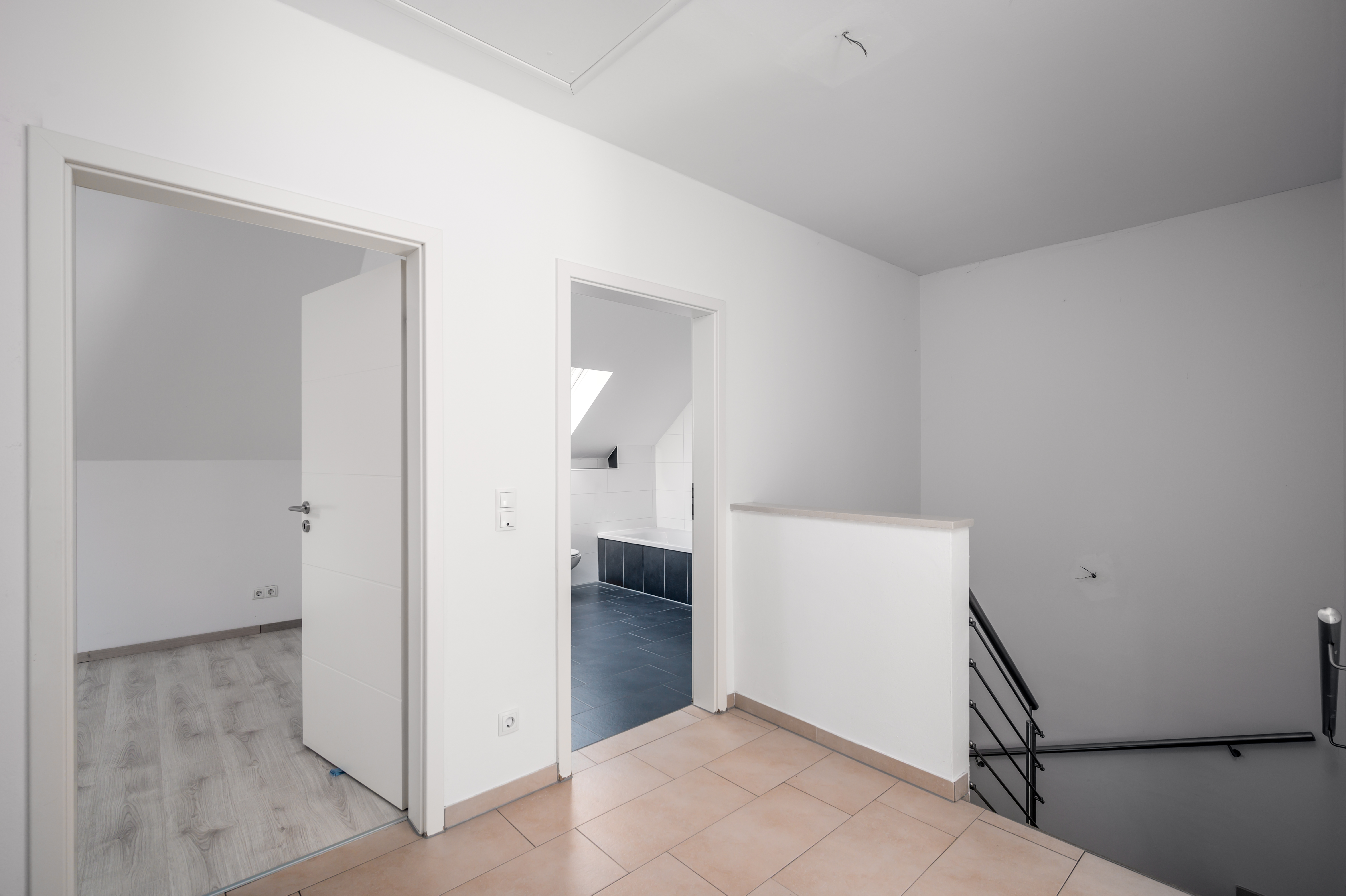 Mit insgesamt drei Schlafzimmern, zwei Badezimmern und einer offenen Küche pro Haus präsentieren sich hier Häuser in einem neuwertigen und gehobenem Zustand. Das Satteldach und die zwei Balkone mit je 5 m² Fläche vervollständigen das modern gestaltete Erscheinungsbild.