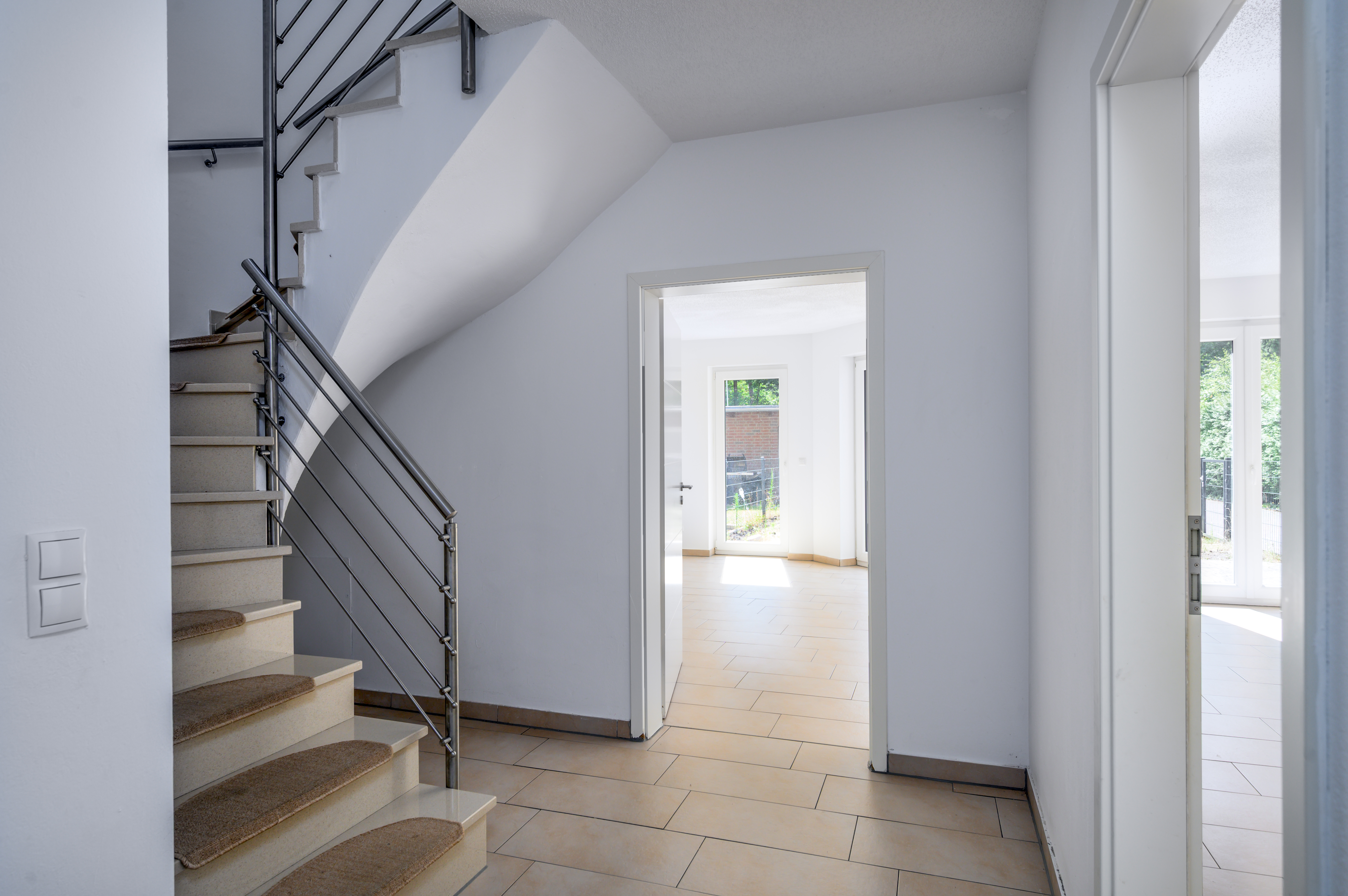 • Dreifachverglaste Fenster, Rollläden, hochwertige Fliesenböden