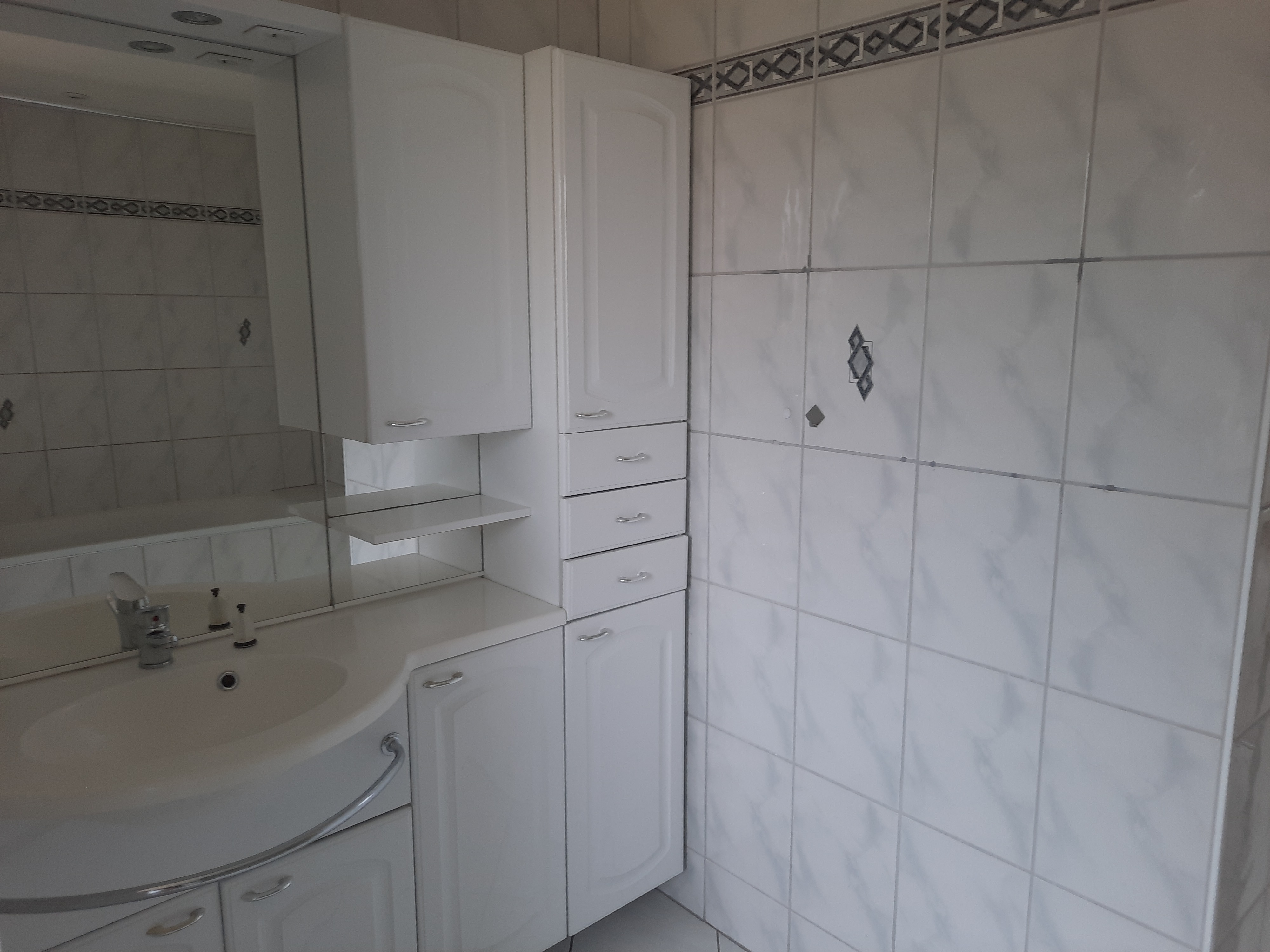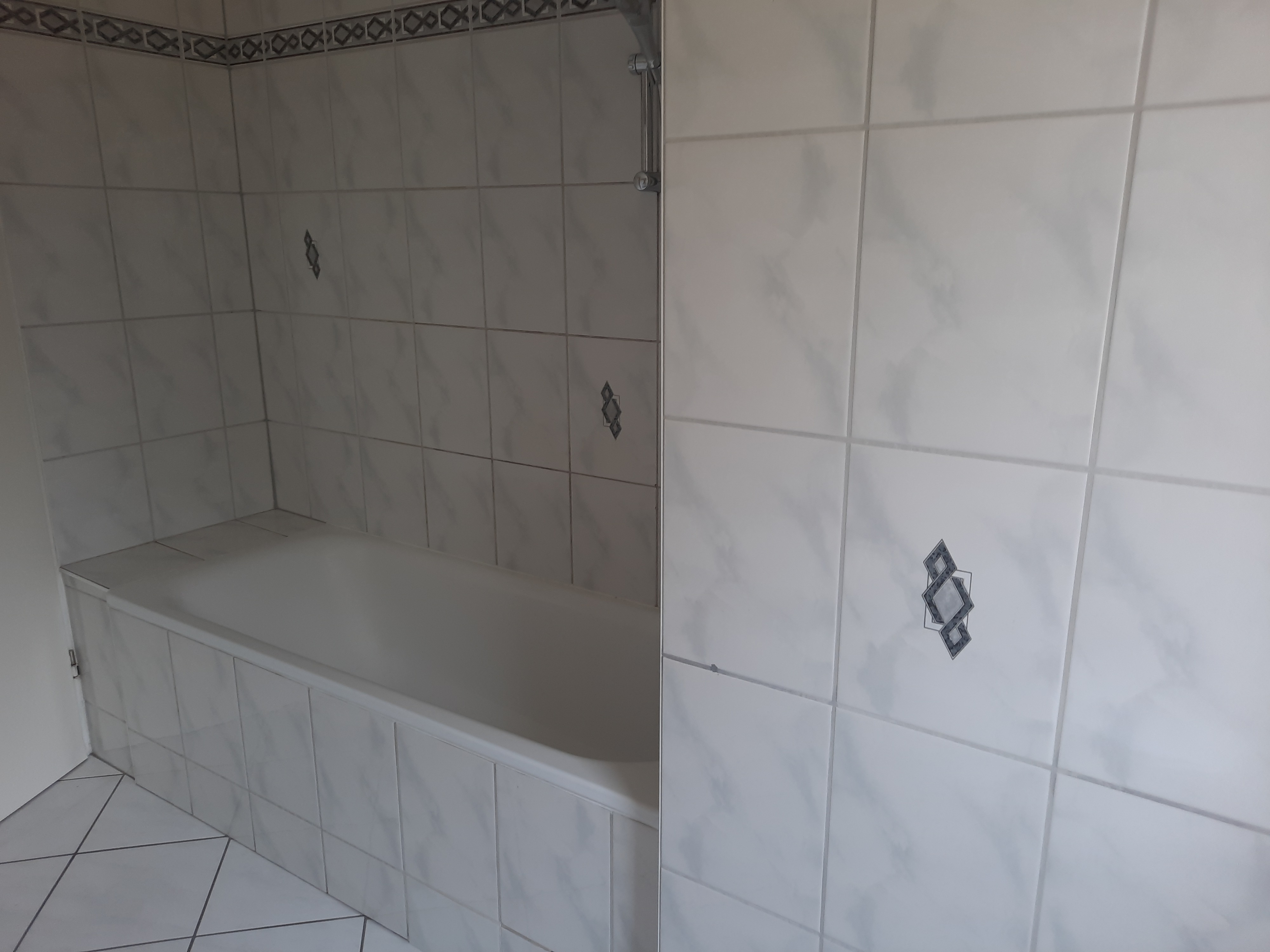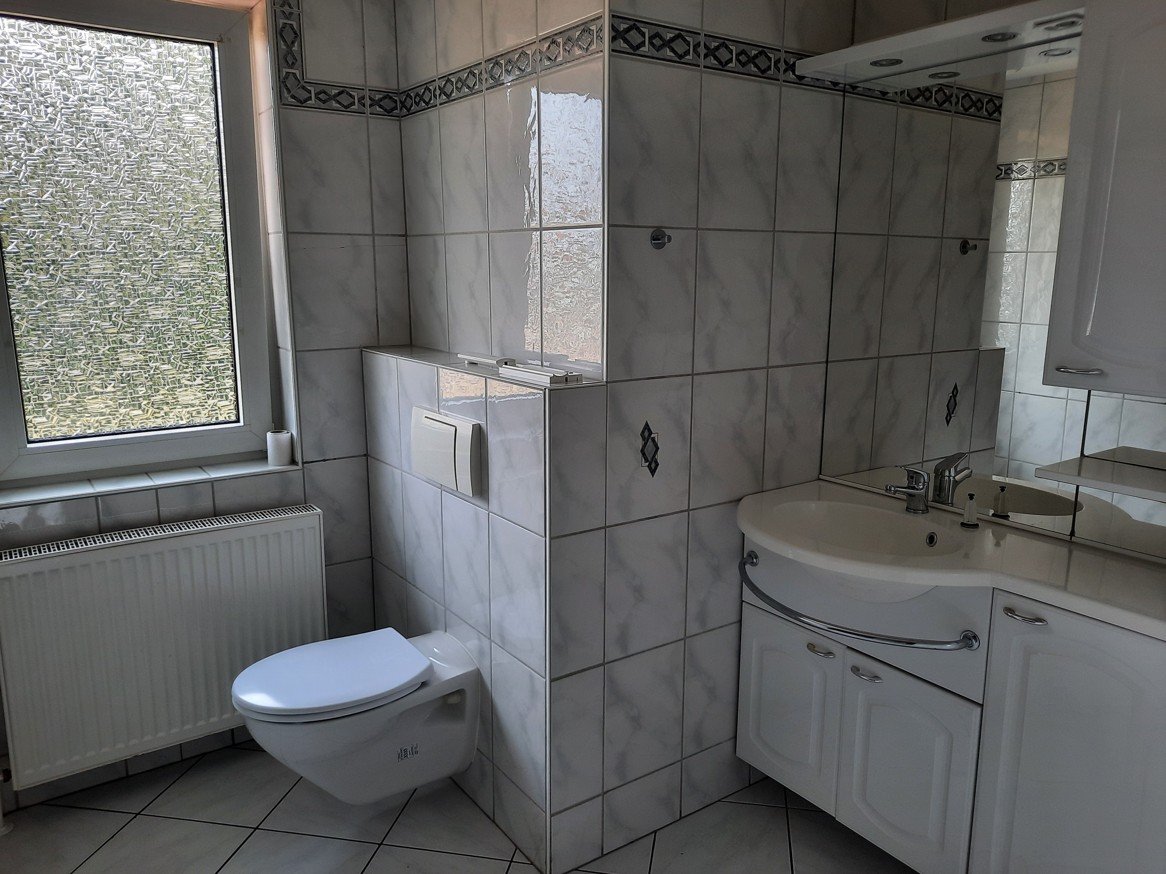 Flur und Bad weiß gefliest